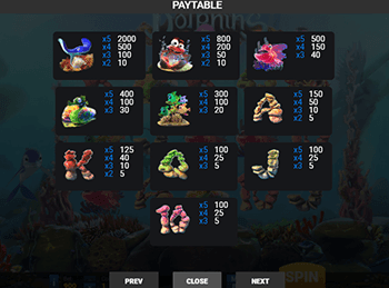 Сокровище Дельфина представлен в виде простейшего игрового автомата от Playson, заработать в котором сможет даже начинающий геймер. Новый slot имеет классический порядок расположения полей и кнопок управления, а в участвующие в розыгрышах символы выполнены с помощью максимально упрощенной цветовой гаммы, чтобы не отвлекать любителей азартных развлечений от формирования призовых сочетаний.