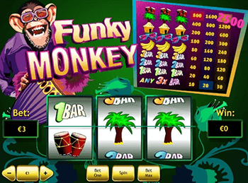 Интерфейс аппарата Funky Monkey не вызовет сложностей – для осуществления настроек в игре предусмотрено минимальное число кнопочек. Геймерам разрешается самостоятельно корректировать поставленную на кон сумму с помощью выбора количества игровых линий и денежной ставкой. Остальные параметры остаются неизменными. Главным преимуществом видеослота является наличие всего лишь 3 барабанов и 1 линии для выплат, что существенно увеличивает вероятность выпадения выигрышной комбинации.