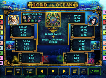 Игровой аппарат Lord Of The Ocean был разработан компанией Novomatic. Тематика и сюжет слота связаны с поисками морских сокровищ. Играть в него будет комфортно и новичкам, и опытным игрокам. Используйте возможности от администрации и разработчиков софта, запускайтеонлайн игровые автоматы Вулкан. Каждый сорвет джек-пот в случае удачи. Джокер и бонусы помогут выиграть и забрать все призы видеослота Повелитель Океана.